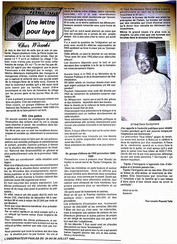 Newspaper articles from L'Observateur Paalga (1991-2021)
