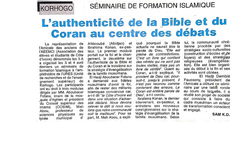 Korhogo. Séminaire de formation islamique : l'authenticité de la Biblie et du Coran au centre des débats