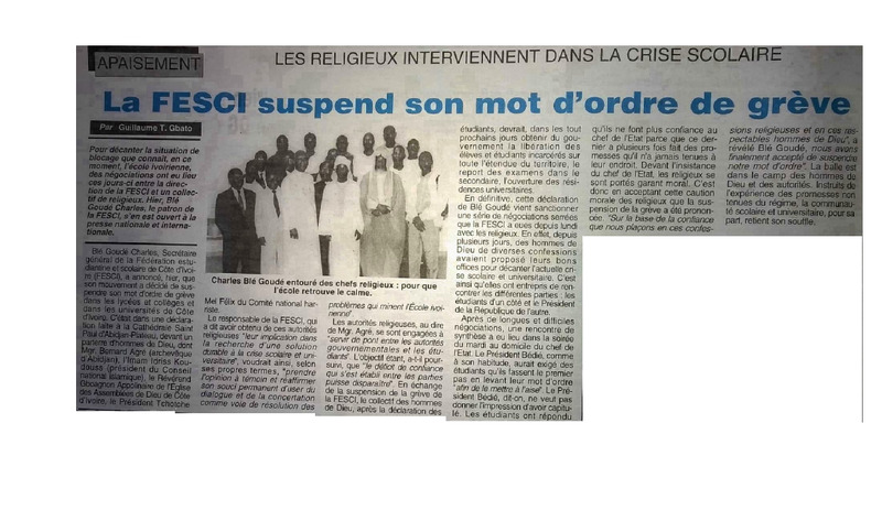 Les religieux interviennent dans la crise scolaire : la FESCI suspend son mot d'ordre de grève