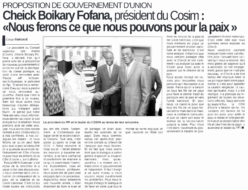 Proposition de gouvernement d'union. Cheick Boikary Fofana, président du Cosim : "Nous ferons ce que nous pouvons pour la paix"