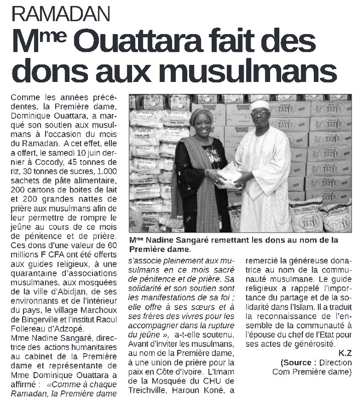 Ramadan : Mme Ouattara fait des dons aux musulmans
