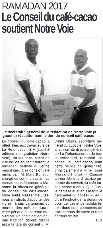 Ramadan 2017 : le Conseil du café-caco soutient Notre Voie