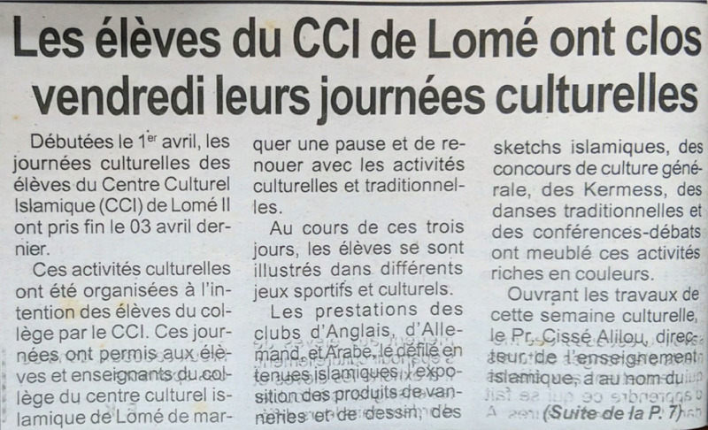 Les élèves du CCI de Lomé ont clos vendredi leurs journées culturelles