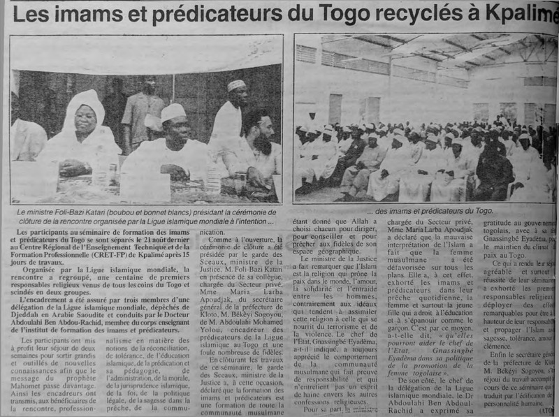 Les imams et prédicateurs du Togo recyclés à Kpalimé
