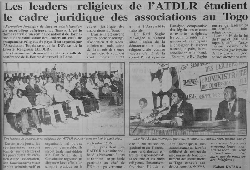 Les leaders religieux de l'ATDLR étudient le cadre juridique des associations au Togo