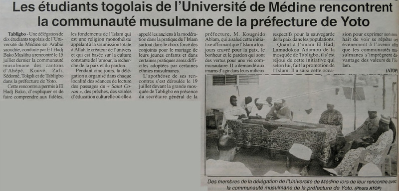 Les étudiants togolais de l'Université de Médine rencontrent la communauté musulmane de la préfecture de Yoto