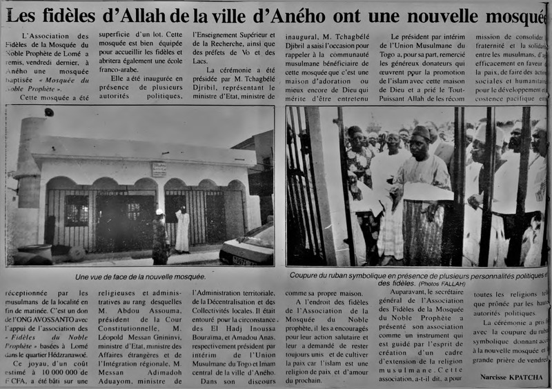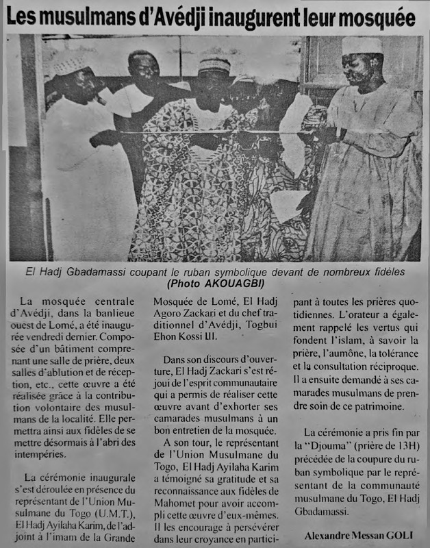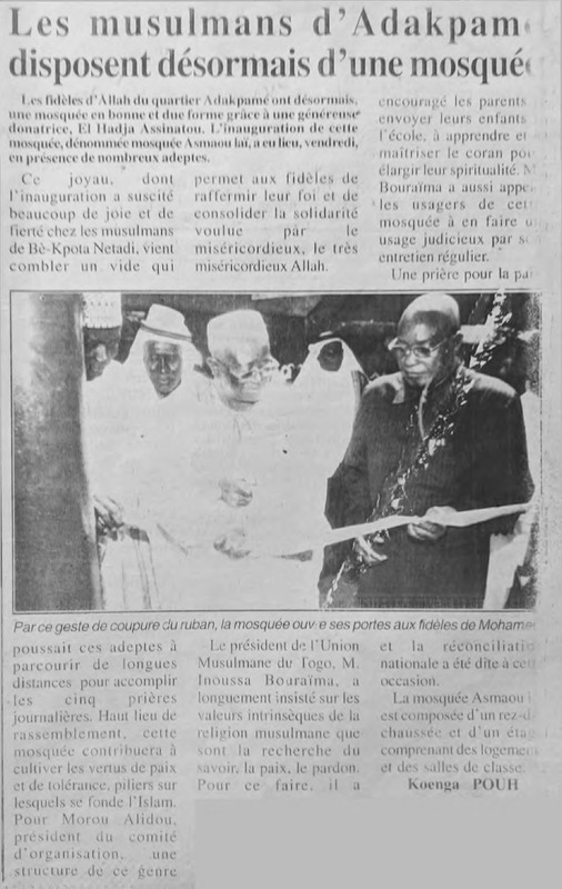 Les musulmans d'Adakpamé disposent désormais d'une mosquée