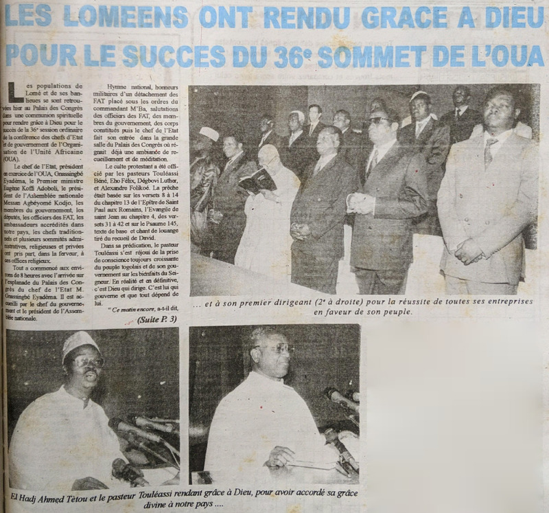 Les Loméens ont rendu grâce à Dieu pour le succès du 36e sommet de l'OUA