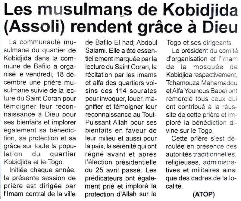 Les musulmans de Kobidjida (Assoli) rendent grâce à Dieu