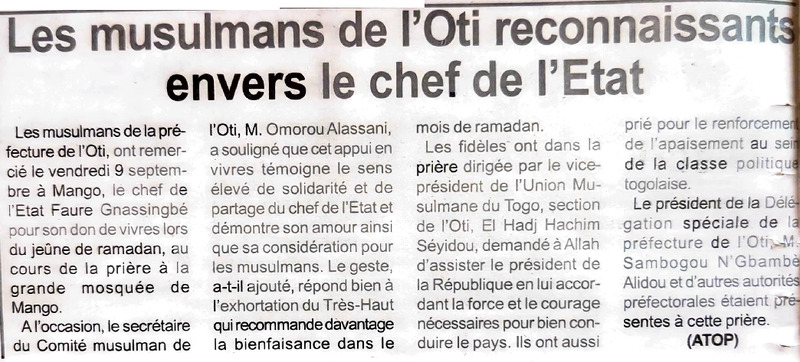Les musulmans de l'Oti reconnaissants envers le chef de l'Etat
