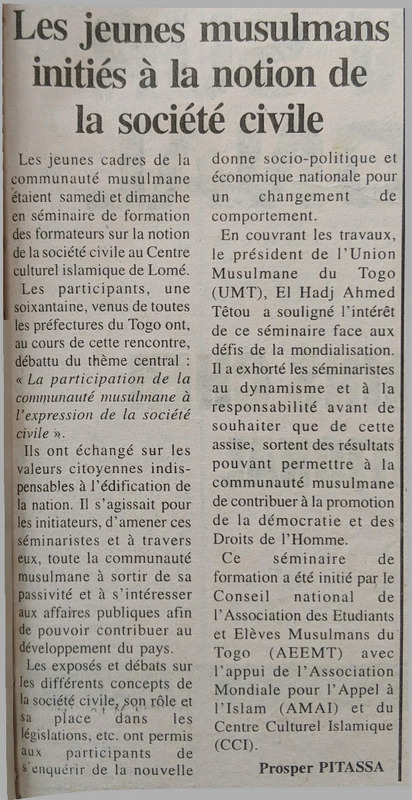 Les jeunes musulmans ouest-africains en assemblée à Lomé