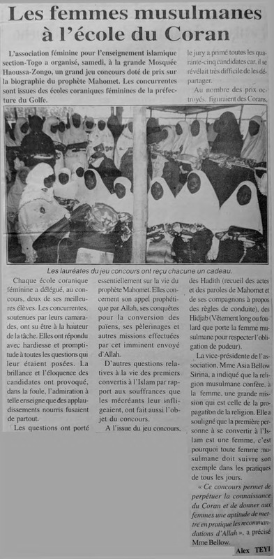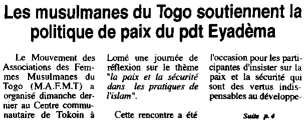 Les musulmanes du Togo soutiennent la politique de paix du pdt Eyadèma