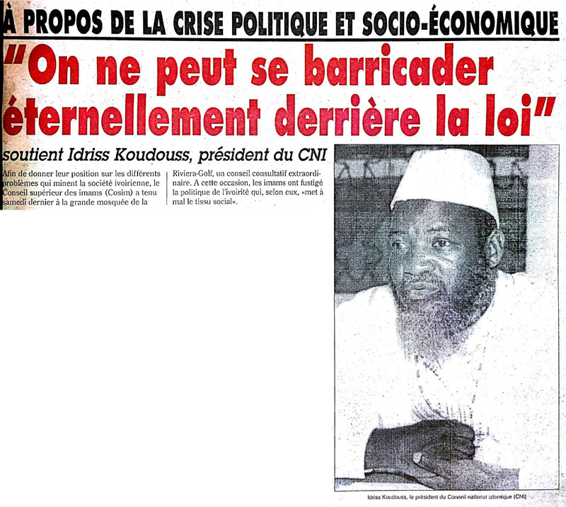 Idriss Koudouss (président du CNI) à Laurent Gbagbo : "Nous avons été choqués par les commentaires de Notre Voie"