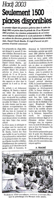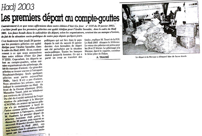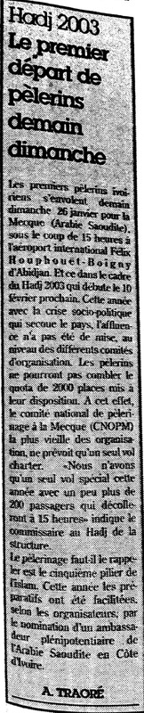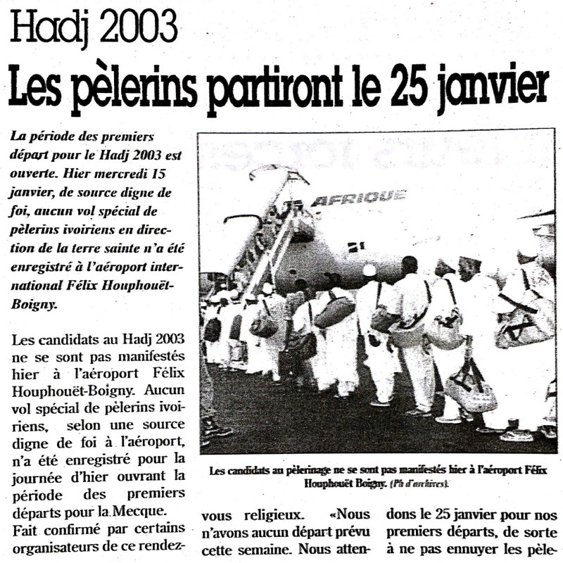 Hadj 2003 : les pèlerins partiront le 25 janvier