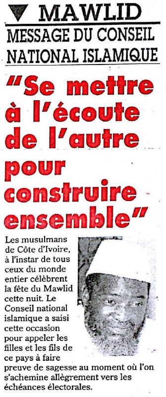 Fête du Mawlid. El hadj Binaté Ibourahima, vice-président du CNI aux Ivoiriens : "Les actions bonnes, c'est se mettre à l'écoute de l'autre pour construire ensemble"