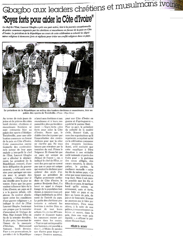 Gabgbo aux leaders chrétiens et musulmans ivoiriens : "Soyez forts pour aider la Côte d'Ivoire"