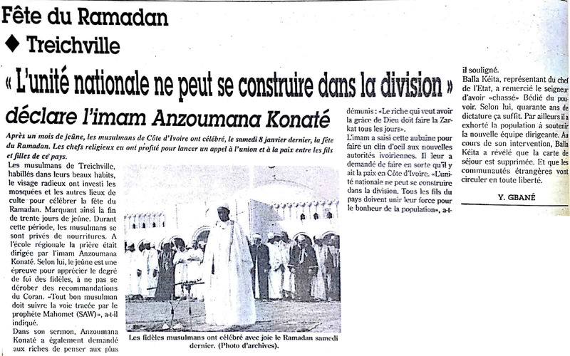 Fête du Ramadan. Treichville : "L'unité nationale ne peut se construire dans la division" déclare l'imam Anzoumana Konaté