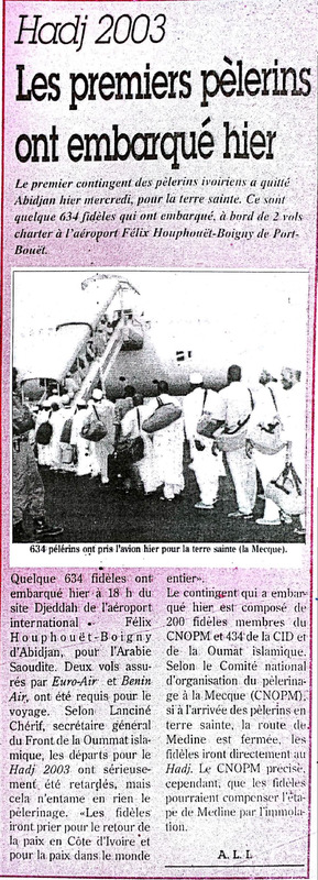 Hadj 2003 : les premiers pèlerins ont embarqué hier
