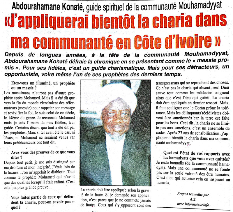 Abengourou / Le Messie promis Abdourahamane Ahmad Konaté, guide spirituel de la communauté islamique Mouhammadiyyat : "La charia n'est nullement un appareil répressif au service de coupeurs de mains"