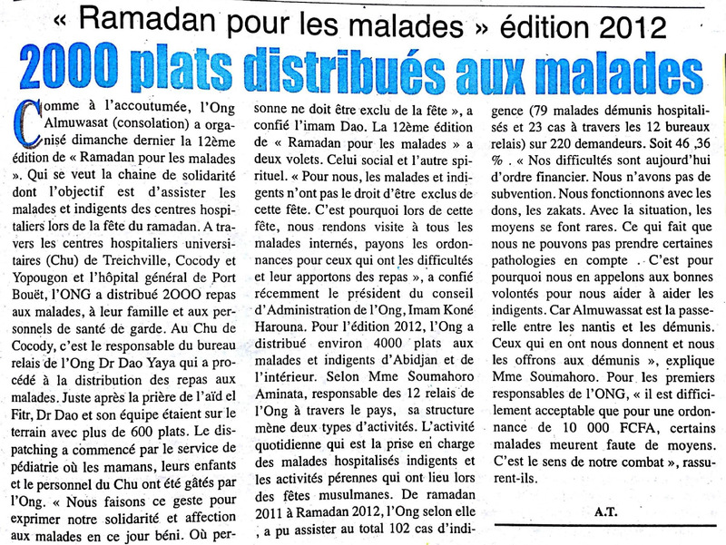"Ramadan pour les malades" édition 2012 : 2000 plats distribués aux malades