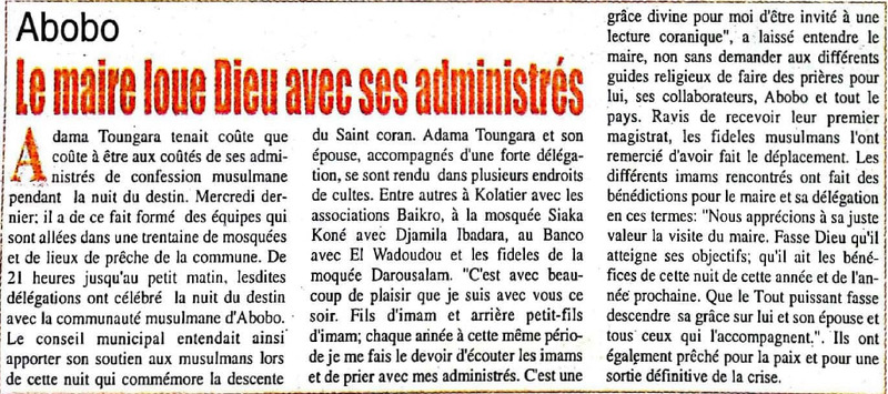 Abobo : Adama Toungara aux côtés de la communauté musulmane
