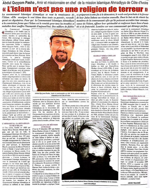 Abdul Quyyom Pasha, Amir et missionaire en chef de la mission islamique Ahmadiyya de Côte d'Ivoire : "L'islam n'est pas une religion de terreur"