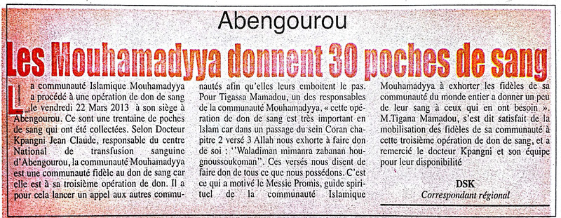 Abengourou : les Mouhamadyya donnent 30 poches de sang