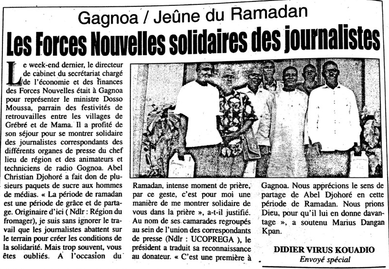 Gagnoa / Jeûne du Ramadan : les Forces Nouvelles solidaires des journalistes