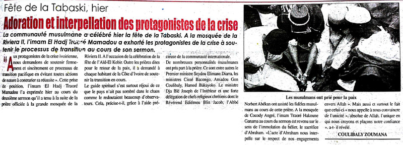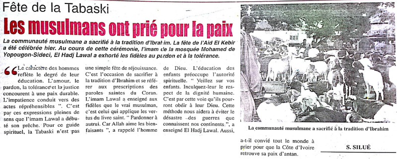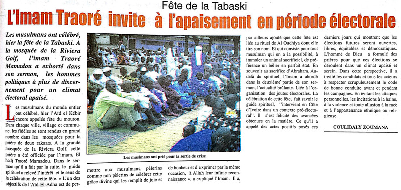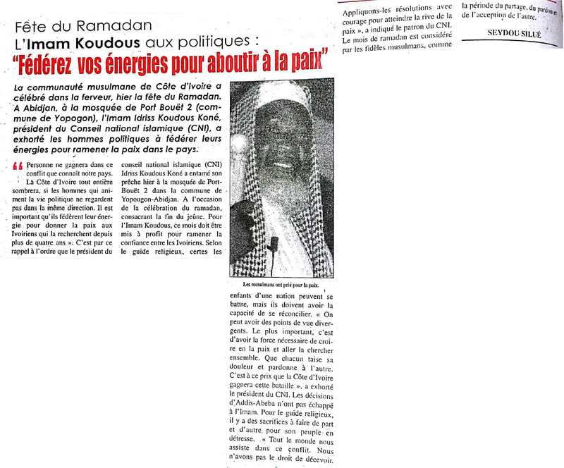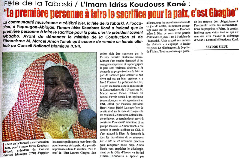 Fête de la Tabaski / L'imam Idriss Koudouss Koné : "La première personne à faire le sacrifice pour la paix, c'est Gbagbo"