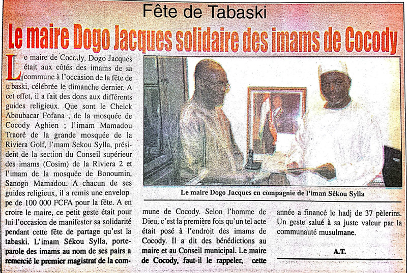 Fête de Tabaski : le maire Dogo Jacques solidaire des imams de Cocody