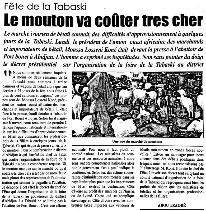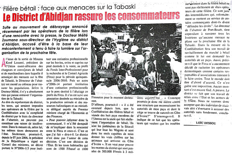 Filière bétail. Face aux menaces sur la Tabaski : le District d'Abidjan rassure les consommateurs