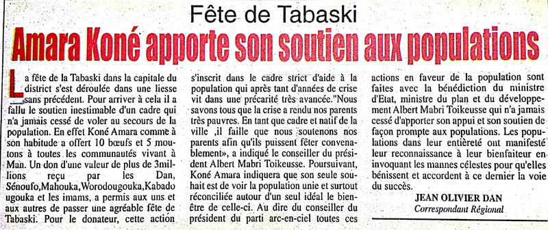 Fête de Tabaski : Amara Koné apporte son soutien aux populations