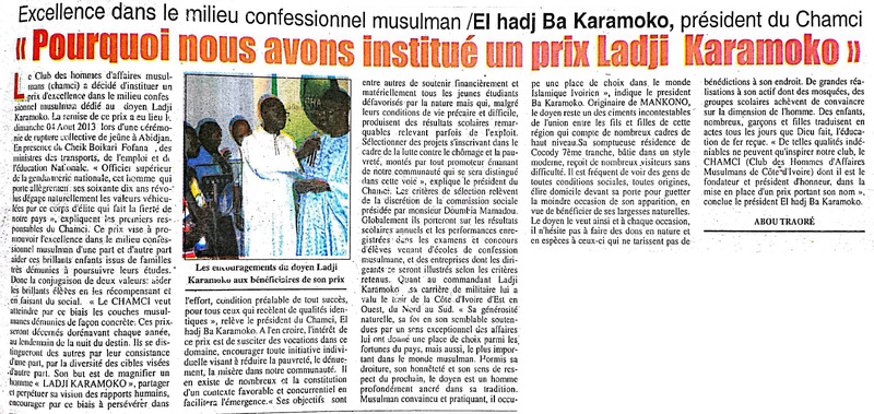 Excellence dans le milieu confessionnel musulman / El hadk Ba Karamoko, président du Chamci : "Pourquoi nous avons institué un prix Ladji Karamoko"