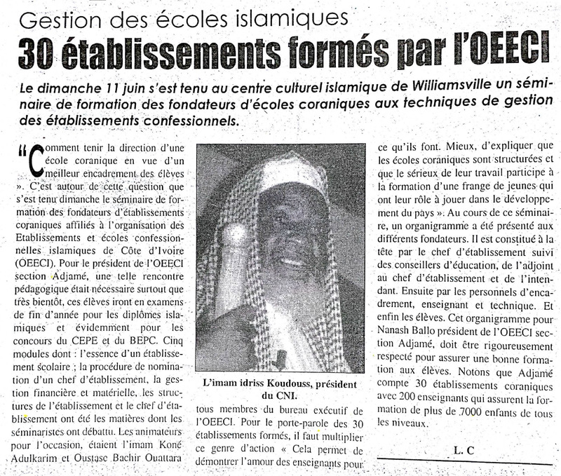 Gestion des écoles islamiques : 30 établissements formés par l'OEECI