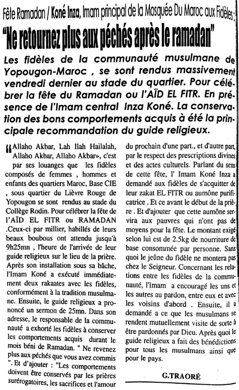 Fête Ramadan / Koné Inza, Imam principal de la Mosquée du Maroc aux Fidèles : "Ne retournez plus aux péchés après le ramadan"