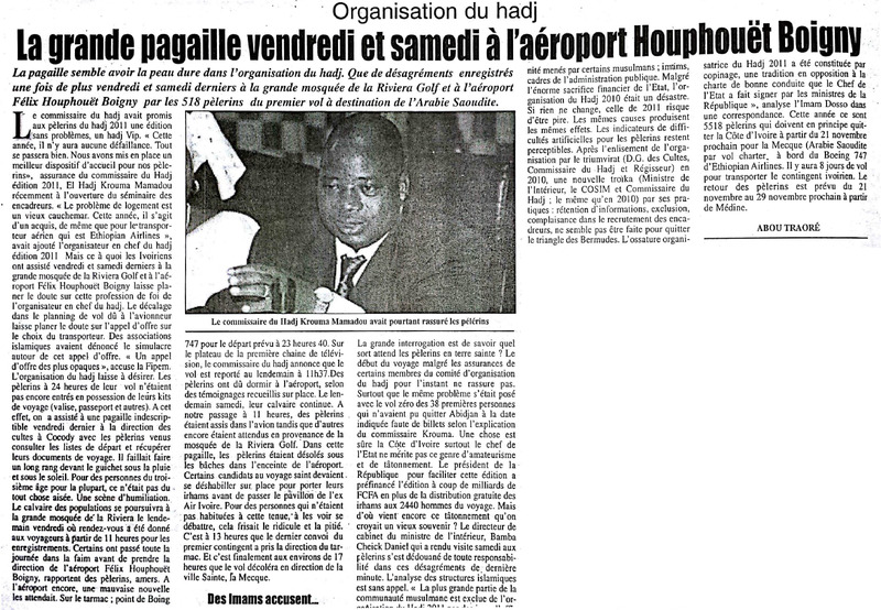 Organisation du hadj : la grande pagaille vendredi et samedi à l'aéroport Houphouët Boigny