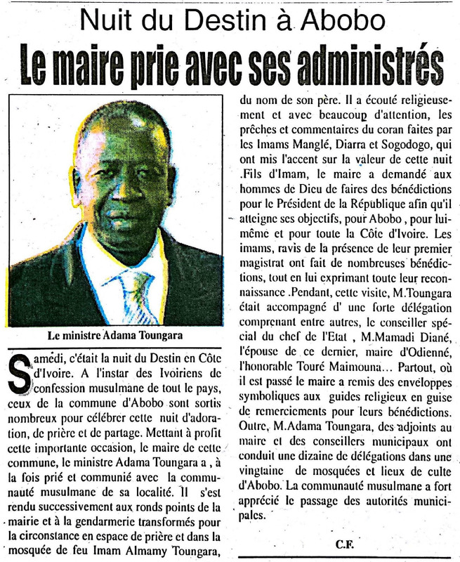 Nuit du Destin à Abobo : le maire prie avec ses administrés