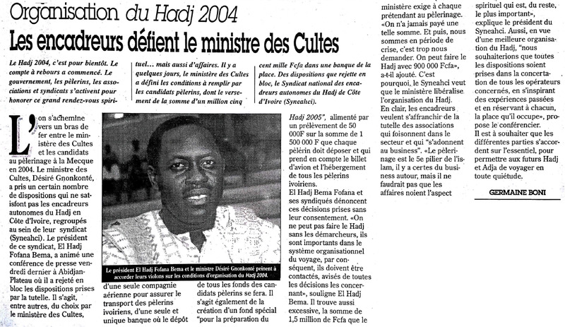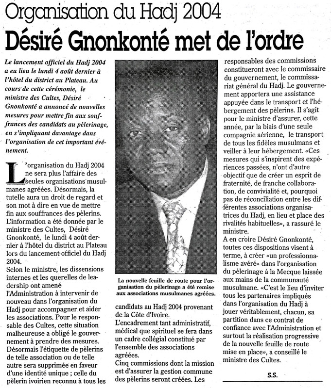 Organisation du Hadj 2004 : Désiré Gnonkonté met de l'ordre