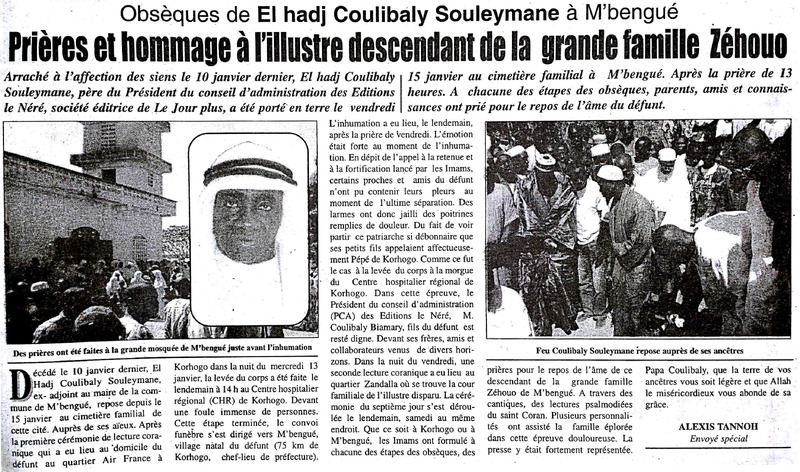 Obsèques de El hadj Coulibaly Souleymane à M'bengué : prières et hommage à l'illustre descendant de la grande famille Zéhouo