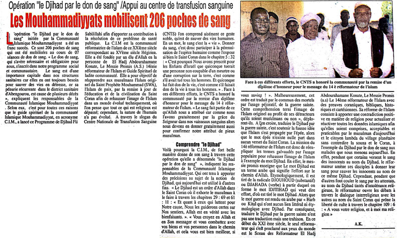 Opération "le Djihad par le don de sang" / Appui au centre de transfusion sanguine : les Mouhammadiyyats mobilisent 206 poches de sang