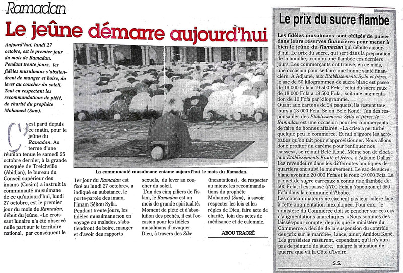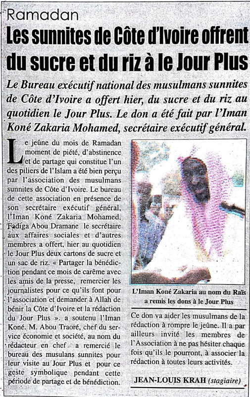 Ramadan : les sunnites de Côte d'Ivoire offrent du sucre et du riz à le Jour Plus