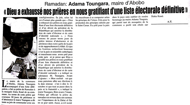 Ramadan. Adama Toungara, maire d'Abobo : "Dieu a exhaussé nos prières en nous gratifiant d'une liste électorale définitive"