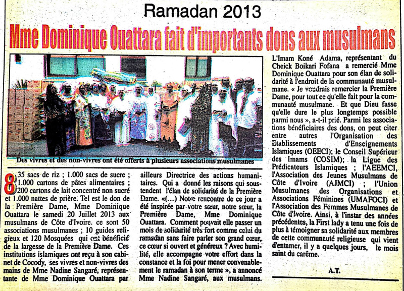 Ramdan 2013 : Mme Dominique Ouattara fait d'importants dons aux musulmans