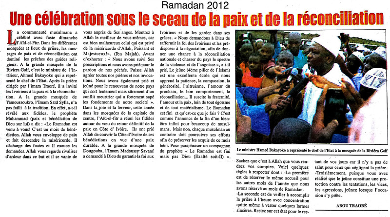 Ramadan 2012 : une célébration sous le sceau de la paix et de la réconciliation