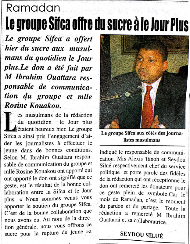 Ramadan : le groupe Sifca offre du sucre à le Jour Plus