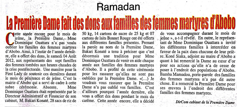 Ramadan : Mme Dominique Ouattara soutient les femmes martyres d'Abobo