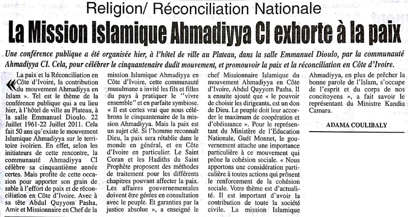 Religion / Réconciliation nationale : la Mission Islamique Ahmadiyya CI exhorte à la paix