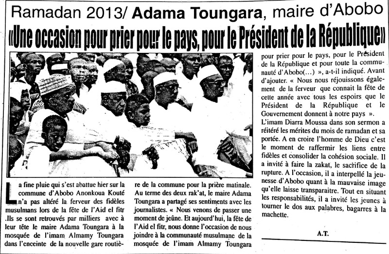 Ramdan 2013 / Adama Toungara, maire d'Abobo : "Une occasion pour prier pour le pays, pour le Président de la République"