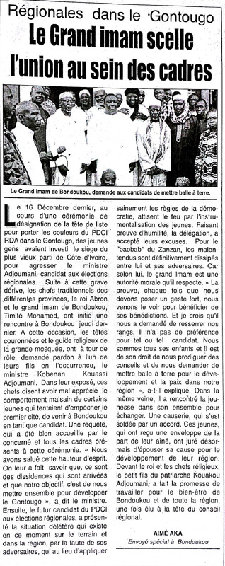 Régionales dans le Gontougo : le Grand imam scelle l'union au sein des cadres