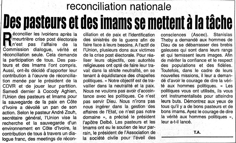 Réconciliation nationale : des pasteurs et des imams se mettent à la tâche